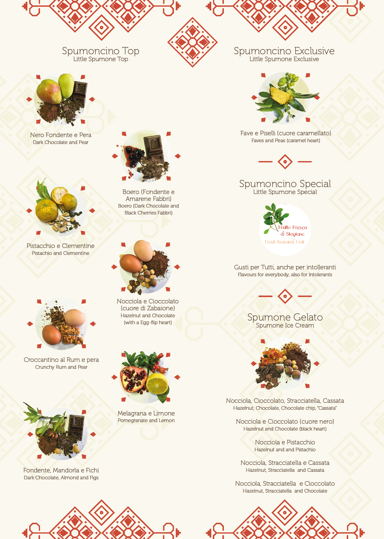 Nel corso degli anni Paolo con il suo estro creativo ha arricchito questa delizia con delle varianti sempre più sorprendenti, come lo Spumone Fave e Piselli di Zollino, e le molte specialità di Spumoncini.
